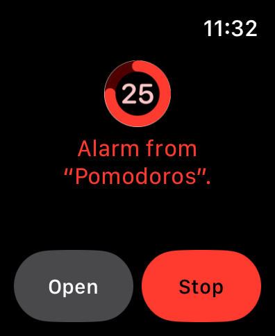 - LockinTimerはタイマー終了時に通知がくるが、これでは見逃してしまったりついつい無視してしまうことが発生する。Pomodoros for Watchではタイマー終了時に音・バイブレーションが鳴り、さらにボタンを押さないと止まらないようになっているため、作業・休憩の切り替えを意識することができる。